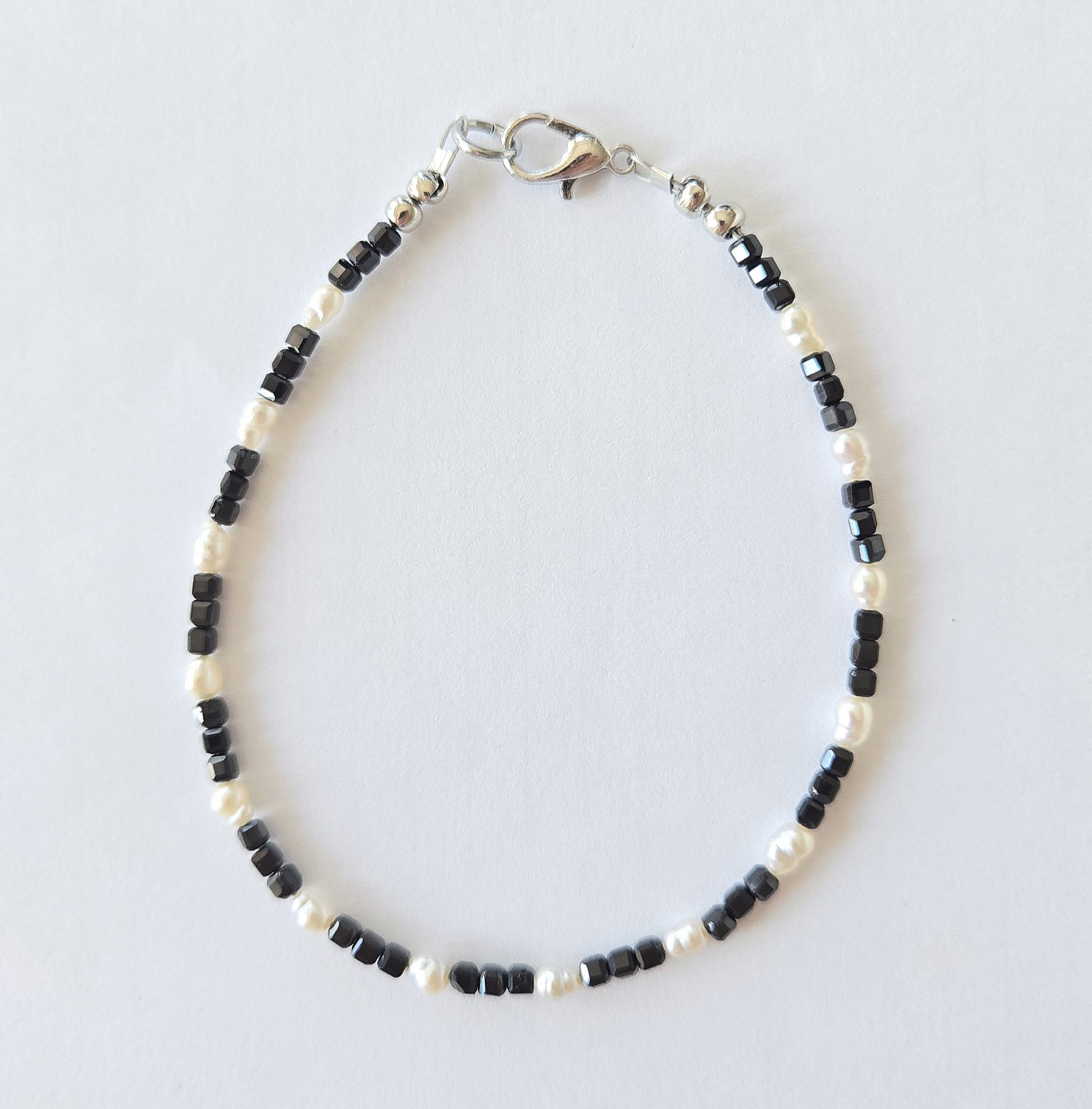 Odkryj harmonię zaklętą w kamieniach z bransoletką Klejnot Maat. W mitologii egipskiej Maat była boginią porządku, prawdy i etycznej równowagi. Ta biżuteria to współczesna interpretacja tych wartości, łącząca w sobie głęboką czerń labradorytu z nieskazitelną bielą naturalnych pereł. To idealny wybór dla kobiet, które w modzie szukają czegoś więcej niż tylko ozdoby – szukają znaczenia i balansu.