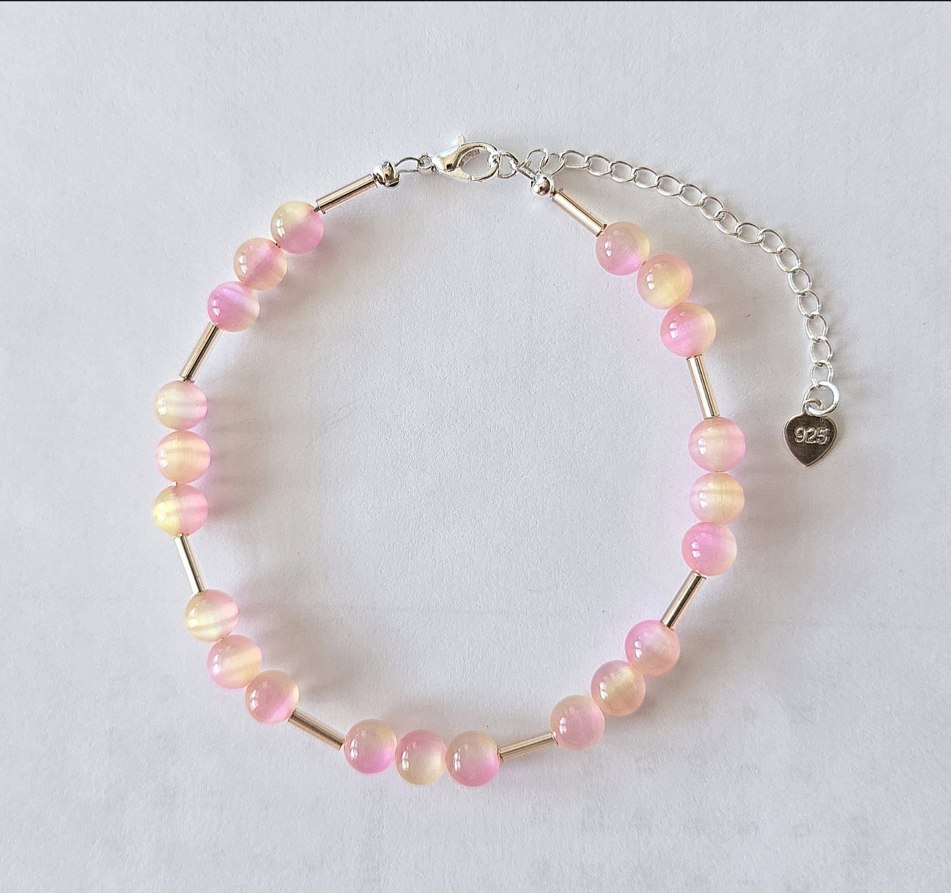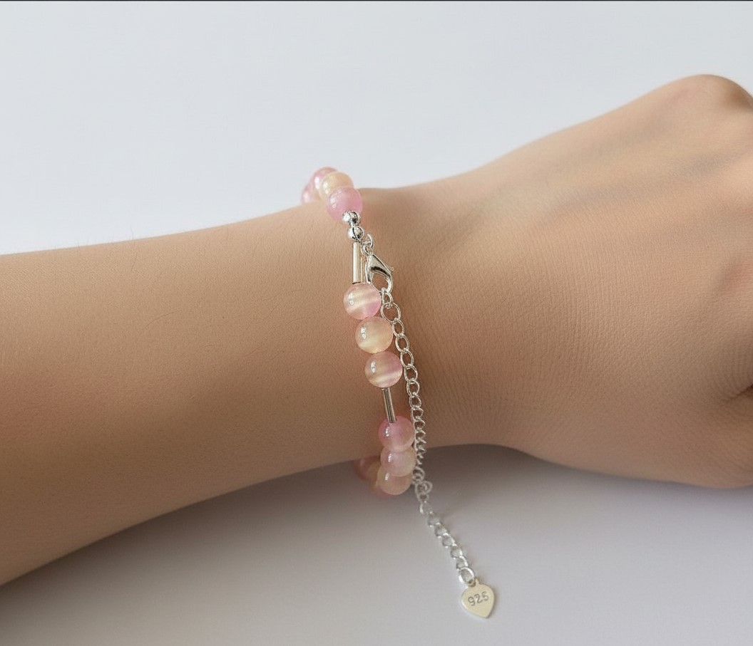 Bransoletka "Mglisty Poranek" – Kamień Księżycowy i Różowe Kocie Oko