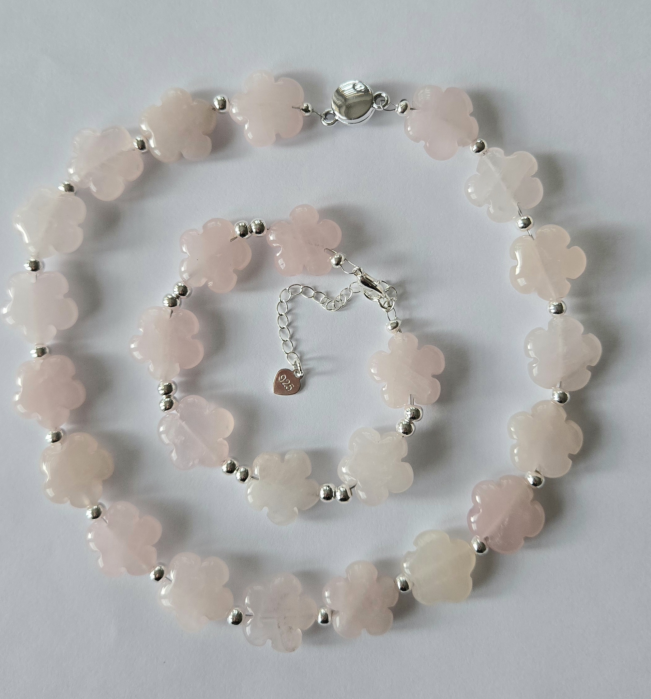 • Akrylowe Kwiaty: Wyselekcjonowane koraliki w kształcie delikatnych kwiatów nadają zestawowi unikalnego, trójwymiarowego charakteru. Ich lekkość sprawia, że biżuteria jest niezwykle komfortowa w noszeniu, a forma kwiatu podkreśla romantyczną naturę kolekcji.