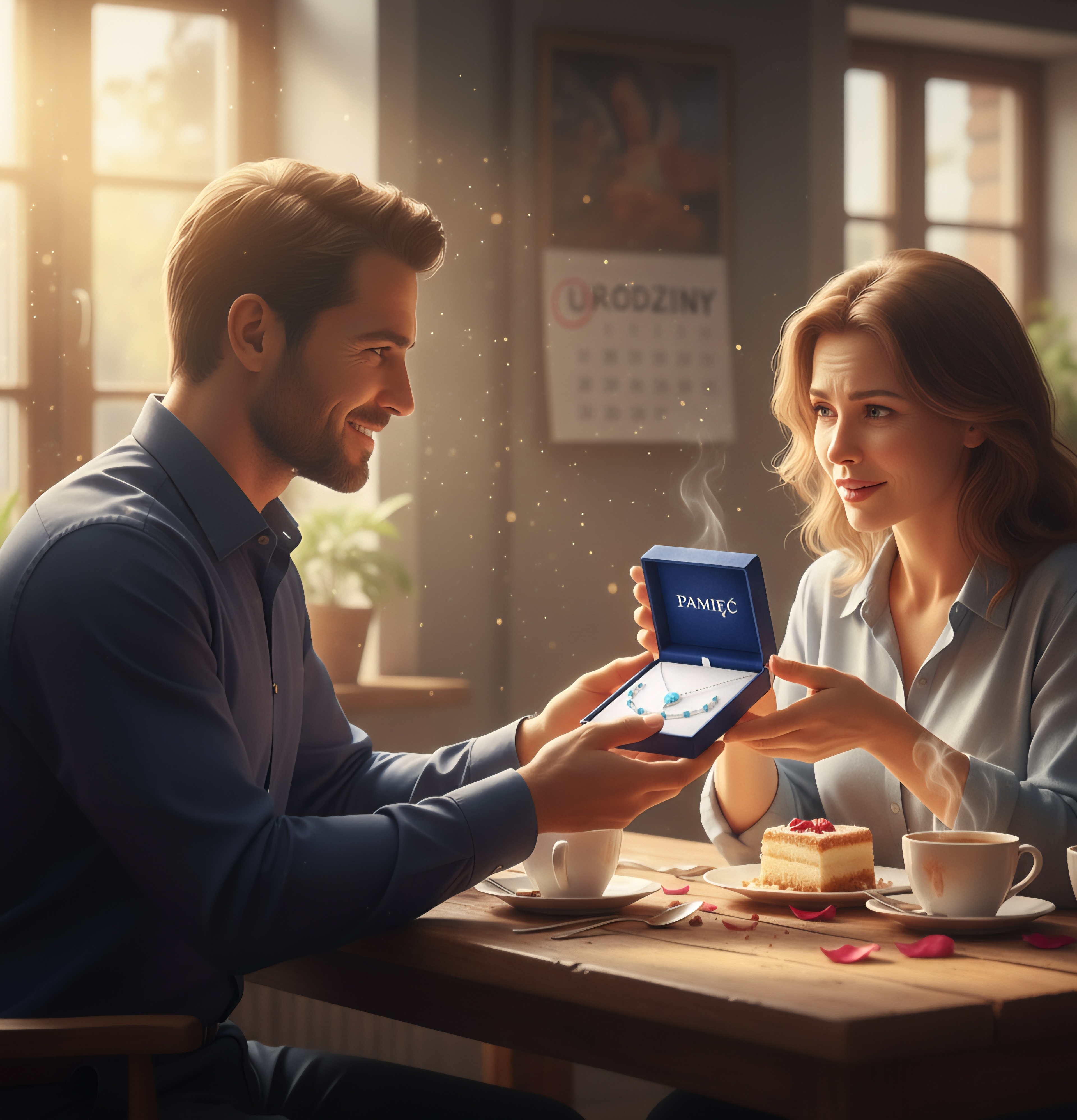 Mężczyzna, patrząc na jej wzruszone oczy, zrozumiał. Nie kupił jej tylko biżuterii, podarował jej coś ceniejszego - pamięć o ich miłości. Bo każdy turkusowy kamień, to chwila, która została w jego sercu, a on pamiętał o każdej z nich. O jej urodzinach, o jej uśmiechu i o miłości, która jest jak ten błękit - nieskończona i głęboka.