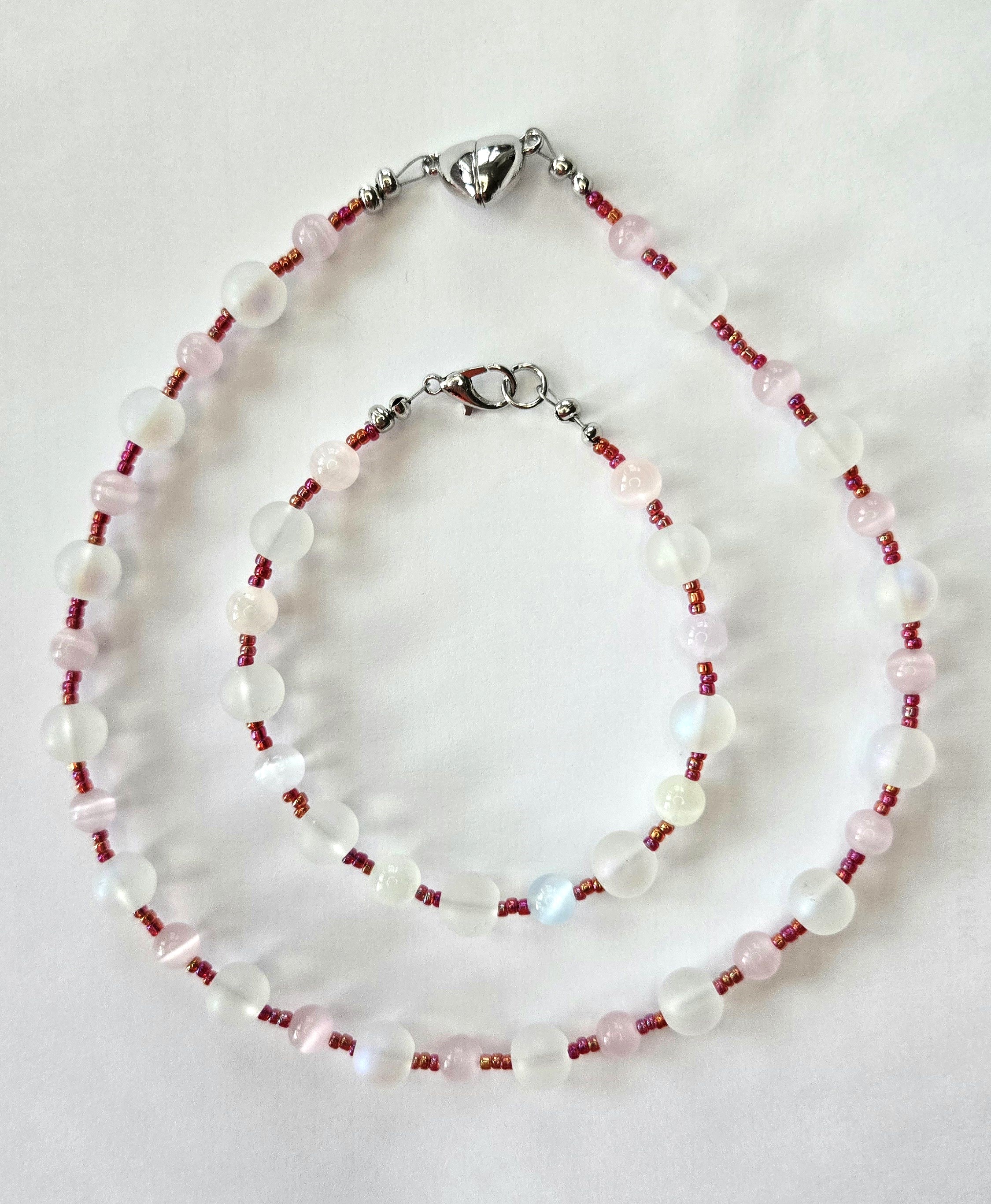 KOMPLET BIŻUTERII ,,TAJEMNICA SERCA" SELENIT I KAMIEŃ KSIĘŻYCOWY