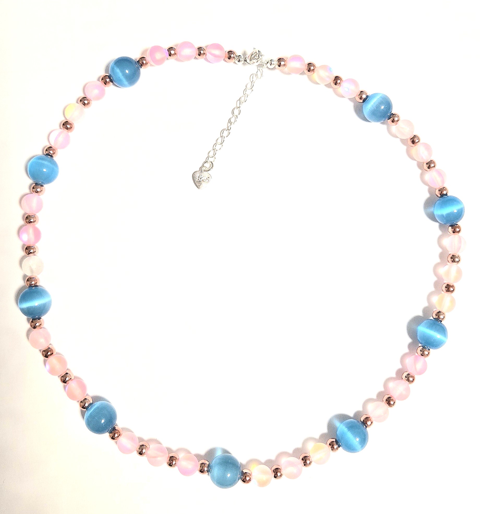 Naszyjnik "Błyskawica w Senj" – Różowy Spektrolit i Błękitny Chalcedon