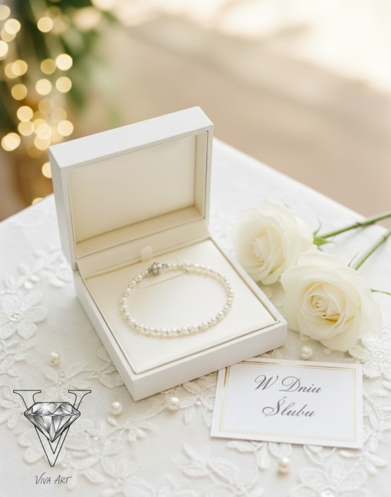 W magicznym dniu, gdy dwa serca łączą się w jedno, każdy szczegół ma znaczenie. Ten uroczy naszyjnik ,,Krople Szczęścia" z perłami i srebrnymi akcentami, delikatnie spoczywający w elegankim pudełeczku, jest więcej niz tylko biżuterią - to symbol. Perły, od wieków kojarzone z czystością, niewinnością i nowym początkami, idealnie odzwierciedlają istotę ślubnego dnia. Srebrne koraliki dodają subtelnego blasku, przypominającego o świetlistej przyszłości, jaka czeka Młodą Parę.