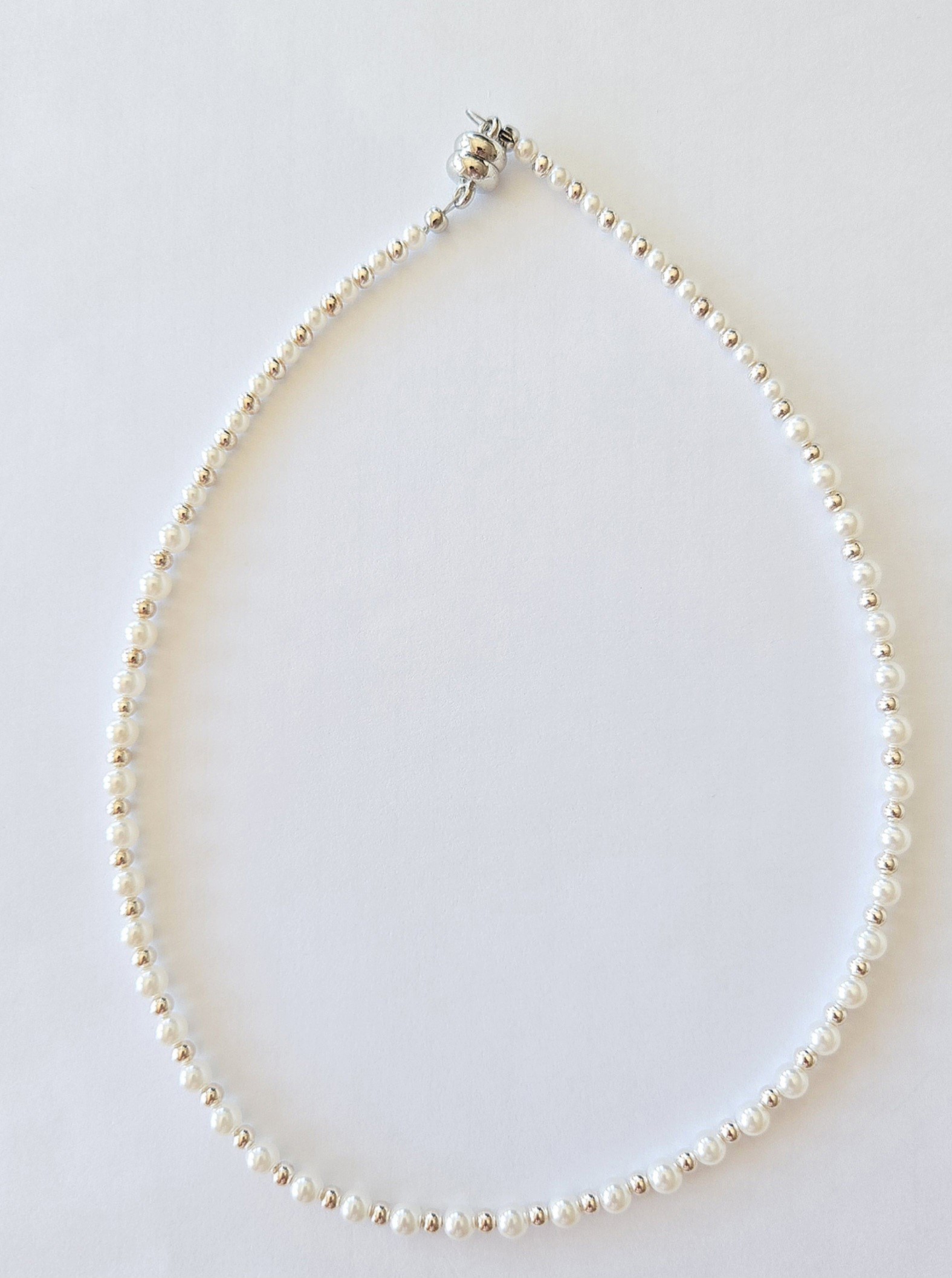 NASZYJNIK ,,KROPLE SZCZĘŚCIA" PERŁY SREBRO ZAPIĘCIE MAGNETYCZNE I SREBRA