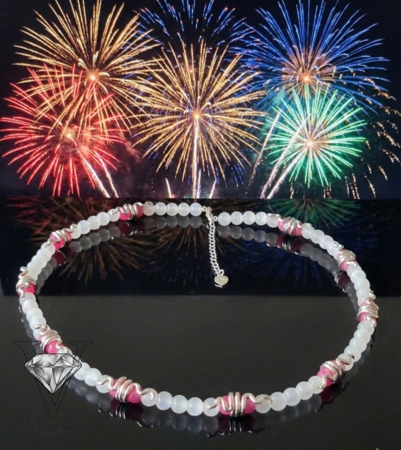 To naszyjnik stworzony na wyjątkowe chwile. Będzie idealnym, pełnym symboliki dodatkiem do zimowego ślubu - kamień księżycowy patronuje nowym początkom, a angelit miłości i opiece. Kilka dni później, podczas nocy sylwestrowej, jego srebrny blask doskonale odbije światła fajerwerków, dodając Twojej kreacji szczypty magii podczas powitania Nowego Roku.