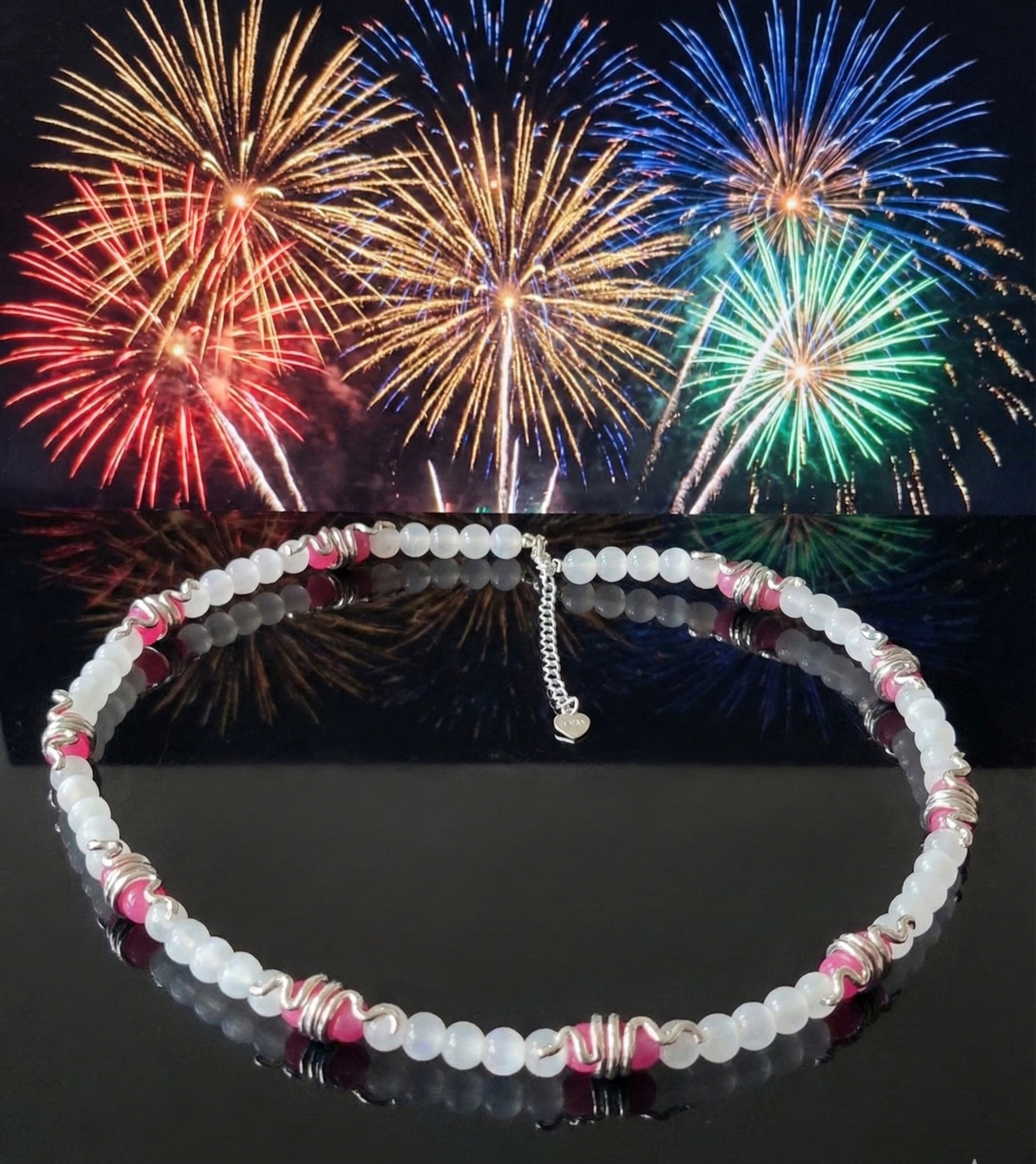 ​Duet Czerwieni: Angelit, Kamień Księżycowy i Srebro