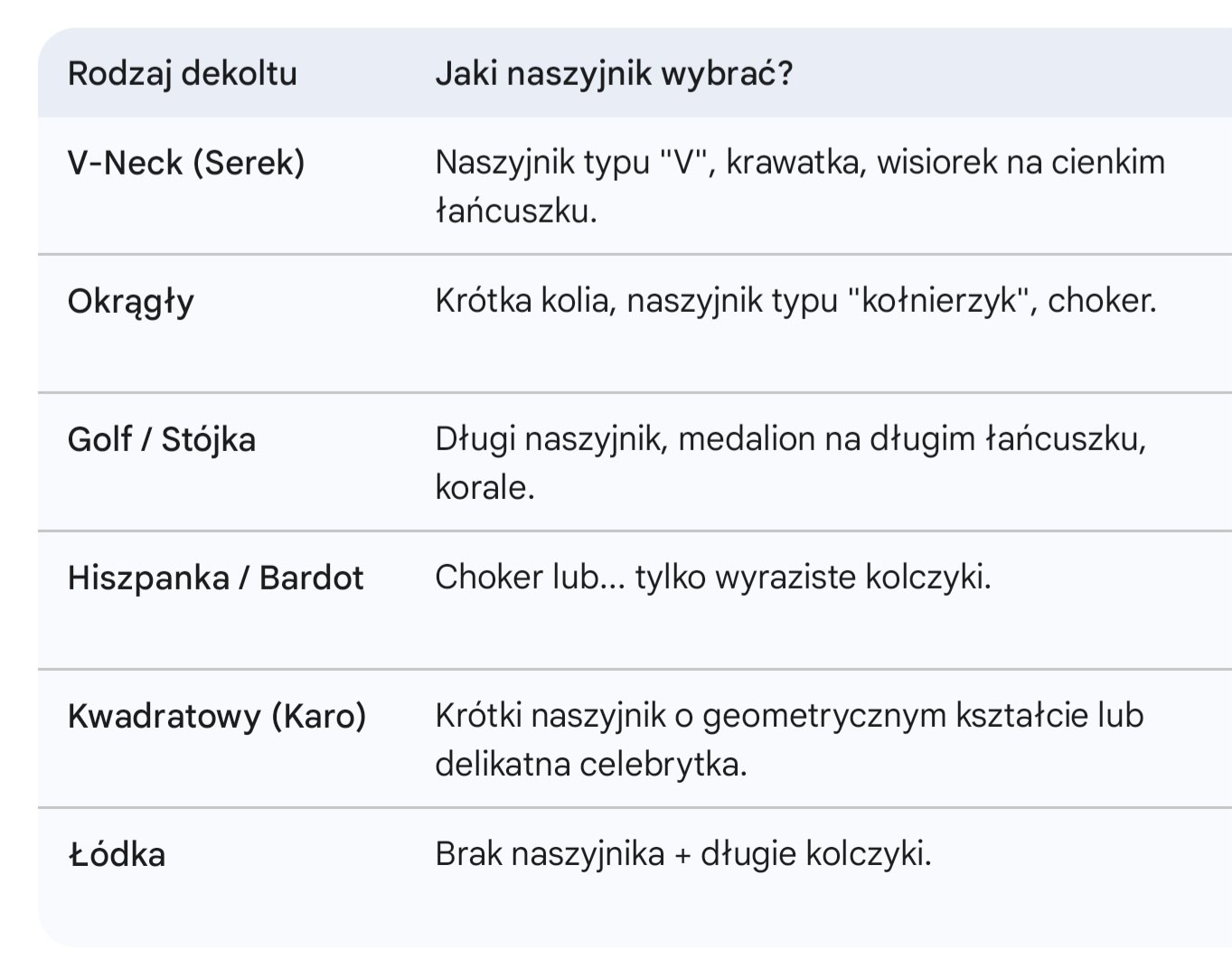 Ściągawka - Jak dobrać naszyjnik?